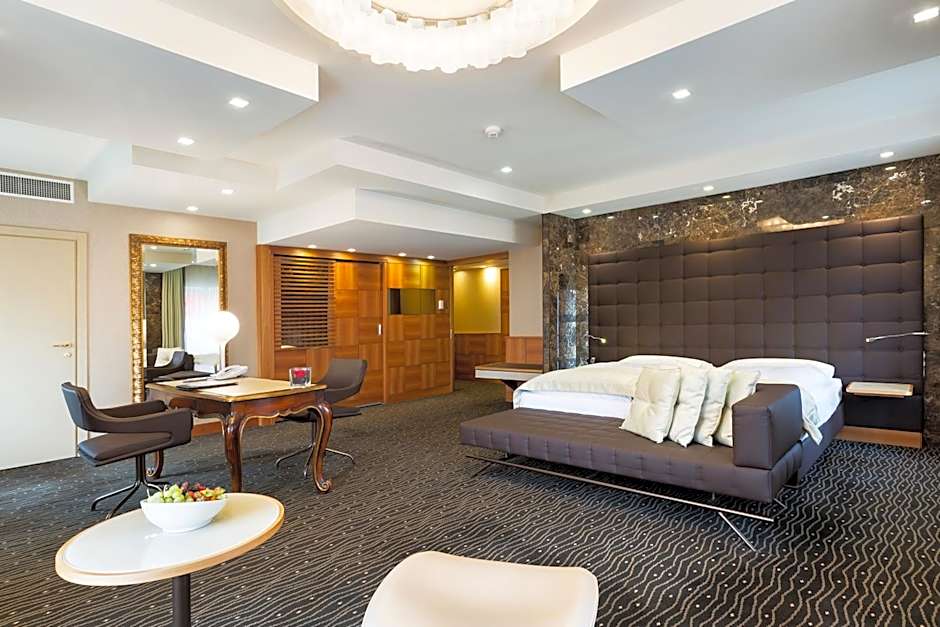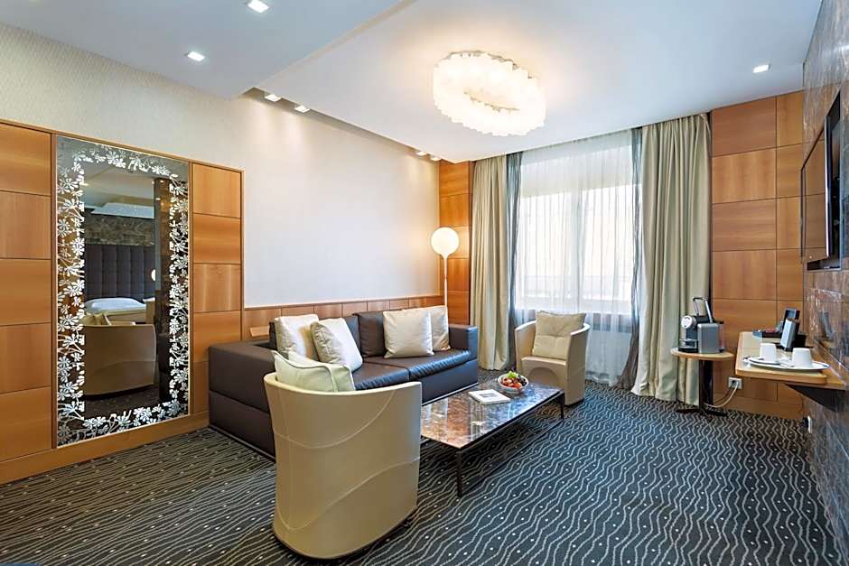 The air-conditioned suite has 1 bedroom and 1 bathroom with a bath and a shower. The suite features soundproof walls, a mini-bar, a tea and coffee maker, a flat-screen TV with satellite channels, as well as city views. The unit has 1 bed.